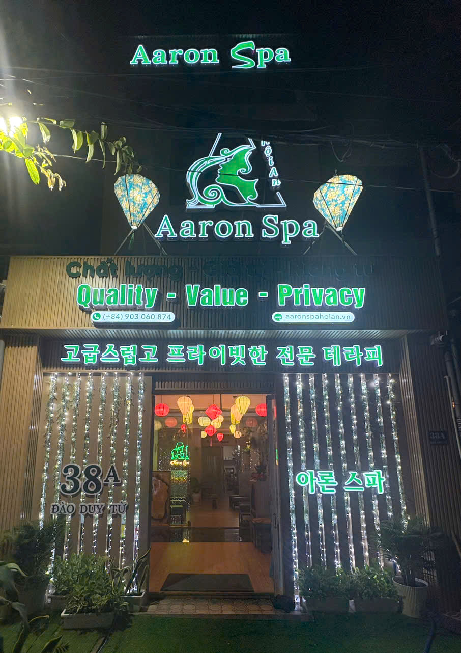 Được đánh giá cao bởi du khách quốc tế trên Google Maps và Tripadvisor, Aaron Spa đã trở thành lựa chọn chăm sóc sức khỏe đáng tin cậy hàng đầu tại Hội An.