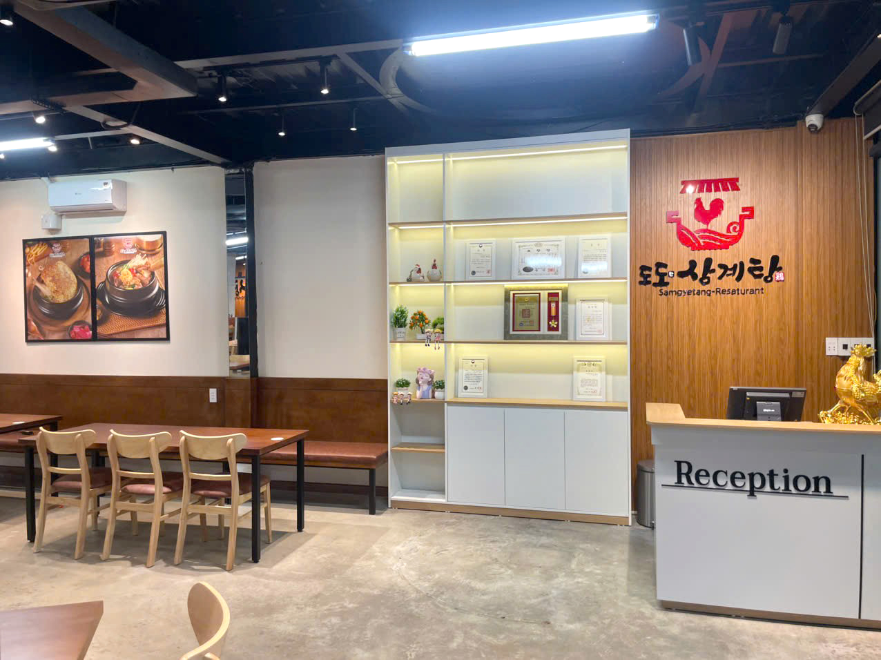 Không gian của DODOHAN Samgyetang – Gà Hầm Sâm Hàn Quốc mang đến cảm giác ấm cúng, hiện đại và tinh tế ngay từ cái nhìn đầu tiên. Tông màu gỗ chủ đạo kết hợp cùng ánh sáng dịu nhẹ tạo nên không khí gần gũi nhưng vẫn sang trọng. Bàn ghế được sắp xếp gọn gàng, mang phong cách Hàn Quốc tối giản, giúp thực khách cảm thấy thoải mái khi dùng bữa. Những bức tranh món ăn treo trên tường gợi mở hương vị hấp dẫn của ẩm thực xứ Kim Chi. Không gian rộng rãi, sạch sẽ, được trang bị điều hòa mát mẻ, mang lại sự dễ chịu trong từng khoảnh khắc. Khu vực quầy lễ tân được bài trí chuyên nghiệp, tạo ấn tượng về sự chỉn chu trong phong cách phục vụ. Từng chi tiết, từ ánh đèn, màu tường đến cách sắp đặt đều thể hiện sự tinh tế của nhà hàng, mang đến trải nghiệm vừa thân thuộc vừa đậm chất Hàn cho mỗi thực khách.