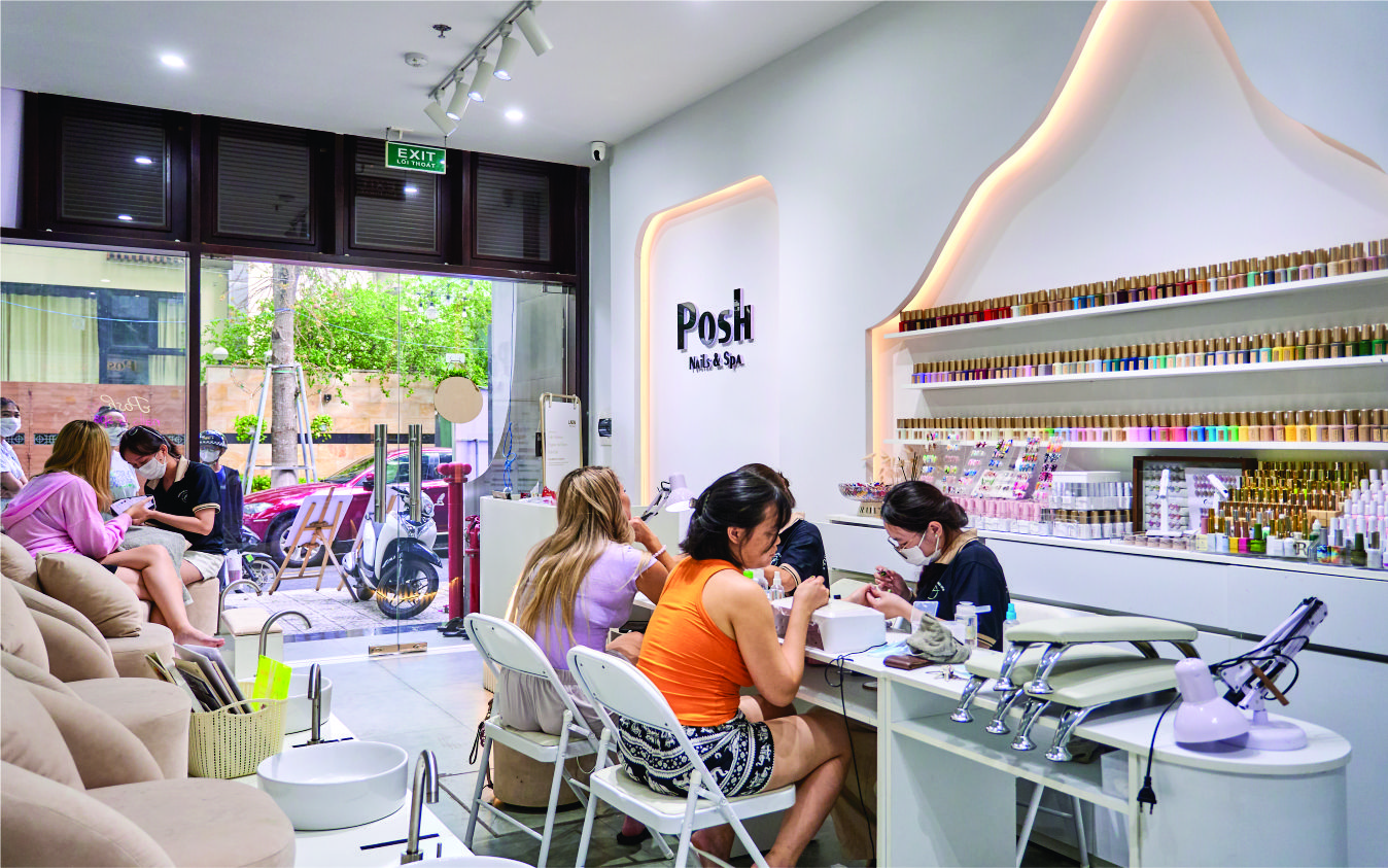 Không gian của Posh Nails and Spa mang nét hiện đại pha chút tinh tế, tạo cảm giác thư thái ngay từ khi bước chân vào. Gam màu trắng chủ đạo kết hợp ánh đèn vàng nhẹ khiến nơi đây trở nên ấm áp và sang trọng. Bố cục được sắp xếp khoa học, từ khu làm móng, ghế spa đến quầy trưng bày đều toát lên vẻ gọn gàng và chuyên nghiệp. Trên tường là những bông cúc lớn mềm mại cùng bảng màu sơn đa sắc, khiến khách dễ dàng lựa chọn phong cách riêng cho mình. Những chiếc ghế êm ái, không gian mở hướng ra phố tạo cảm giác vừa riêng tư vừa gần gũi. Dù là khách địa phương hay du khách nước ngoài, ai đến đây cũng cảm nhận được sự chăm chút trong từng chi tiết. Posh Nails and Spa không chỉ là nơi làm đẹp, mà còn là góc nhỏ giúp mỗi người tìm lại sự cân bằng và yêu bản thân hơn mỗi ngày.