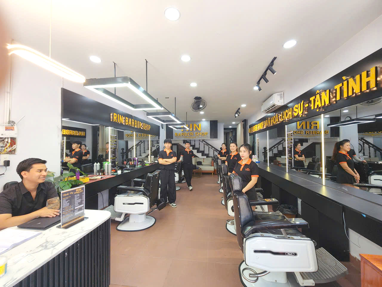 Đội ngũ Rin Barber Shop trẻ trung, bài bản và giàu kinh nghiệm, luôn cập nhật xu hướng để tạo kiểu chuẩn dáng, sắc nét trong từng đường cắt. Mỗi dịch vụ được thực hiện theo quy trình chuẩn hóa, chú trọng vệ sinh và trải nghiệm, bảo đảm khách cảm thấy yên tâm từ lúc vào cửa đến khi rời ghế. Quán công khai bảng giá, dịch vụ rõ ràng, có các gói linh hoạt giúp khách dễ so sánh và lựa chọn theo nhu cầu. “Văn hóa – Lịch sự – Tận tình” là kim chỉ nam phục vụ: giao tiếp chuẩn mực, lắng nghe chu đáo, chăm chút từng chi tiết nhỏ. Đến với Rin, bạn không chỉ nâng tầm diện mạo mà còn nhận được một dịch vụ minh bạch, chuyên nghiệp và đáng tin cậy.